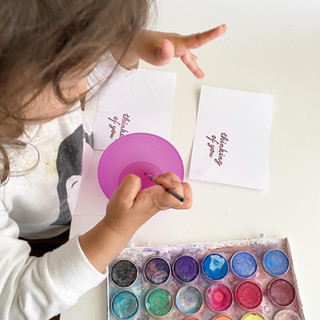 My daughter and I made more cards using watercolors and xyron glaminator. We hope to send them to #sendseniorslove. I added foil to my cards because my daughter can be very CREATIVE and gets paint everywhere (as you can see). And this way the foil message is still legible. If you have time consider making something for your community.