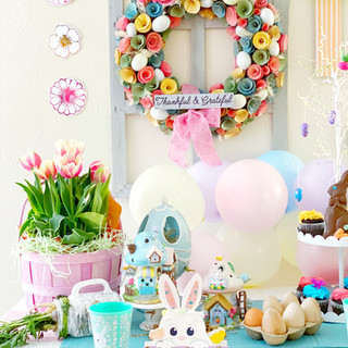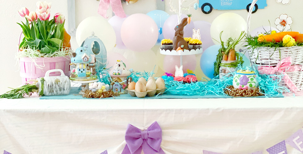 For the table, the pretty pastel figurines radiate the spirit of a Hoppy Easter, and my 2 year old daughter absolutely loved them. Even though it’s a small party, we had a blast. We had many activities and crafts for our toddler. And lots of Easter sweets with adorable foil ears.